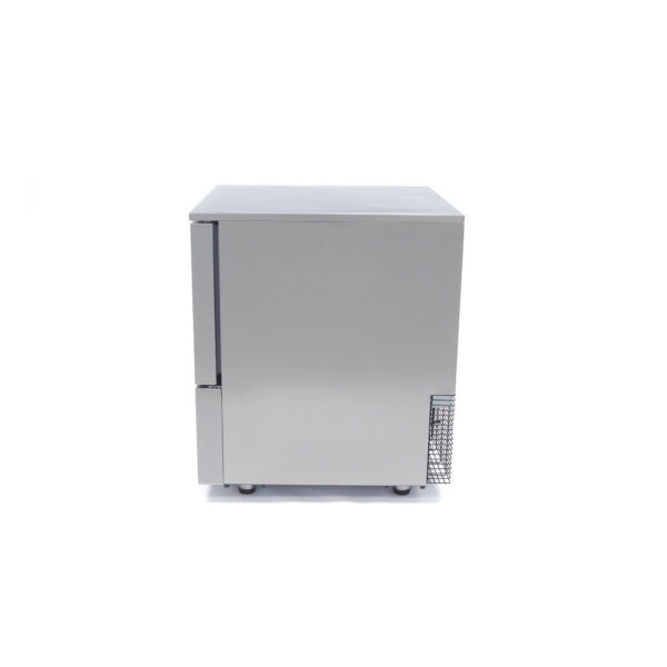 Tento mrazák s výbuchem je robustní a kompaktní, což ji činí vhodnou pro použití v jakémkoli hotelu, restauraci, jídelně a kavárně. Je ideální pro použití, když potřebujete rychle ochladit nebo zmrazit jídla, která již byla připravena. Tím se minimalizuje růst bakterií a výrobky si zachovávají svoji vysokou kvalitu a vyhnete se hrubému krystalizaci během procesu zmrazování. Mraznička s výbuchem má kapacitu 3 x 1/1 GN nebo 40 x 60 cm pekárenských plechů Bakerynorm, které si můžete objednat samostatně. Kromě toho má mrazák s výbuchem dveře se samozavírací funkcí a antibakteriálním těsněním z pryže. Uvnitř mrazničky s výbuchem jsou zaoblené rohy, aby se neshromažďovala špína. Chladící systém sestává z vodního odpařovače a chladicí kapaliny R290, která je bez CFC. Kromě toho je mrazák s výbuchem vybaven jaderným teploměrem.